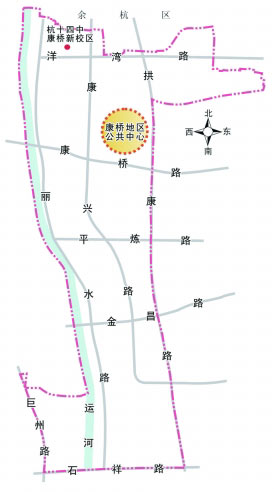 一个公共中心为康桥地区公共中心,位置在电厂河北侧沿康桥路和拱康路一带。