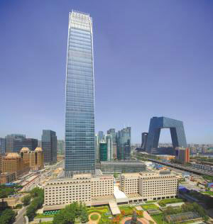 国贸大厦是中国国际贸易中心三期工程中的核心部分,位于北京市东三环中路与建国门外大街交接处,是北京商务中心区的核心,主塔楼建筑高达330米,为一座集写字楼、现代化商城等为一体的综合商务中心。