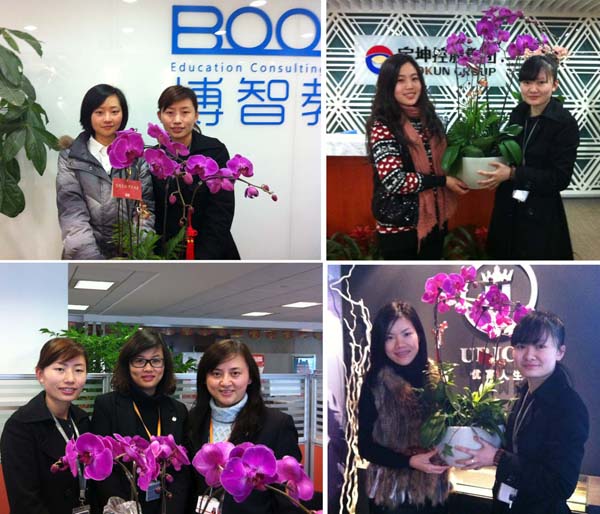 客服专员在每户租户新年开门办公第一天,向租户总经理办公室赠送一份附有新年祝福贺卡的蝴蝶兰绿植盆栽。祝愿租户龙年行大运,同时也表达与租户来年共同前进的美好祝愿。