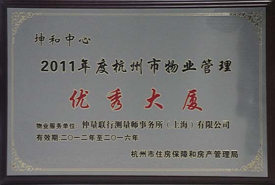 近日,坤和中心被杭州市住房保障和房产管理局评为“2011年度杭州市物业管理优秀大厦”。此外,坤和中心还获得“2011年度杭州市重点楼宇五星级物业管理”称号。