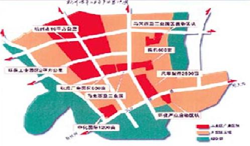 以纺织服装、机械电子、食品饮料、生物制药、汽车配件、建筑材料、包装为支柱的十几个行业门类的工业经济体系。工业区将最终形成以高新技术为先导,以传统产业和制造业为基础,以服务业为支持全面发展的格局。