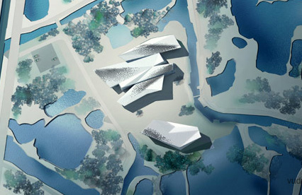 中国建筑师朱培设计了西溪湿地艺术博物馆,位于中国杭州附近。这一概念源自建筑和自然的相互作用。这样的设计通过五大建筑创造了真正分散,落叶和住房的性质。四个相连的建筑有商业,娱乐,酒店,餐厅和接待职能。那个单一的建筑是艺术博物馆。建筑物被浅色,反光板和被精整过的锌板覆盖,能够在一个分散的柔软的影子中达到人与自然互动的效果。