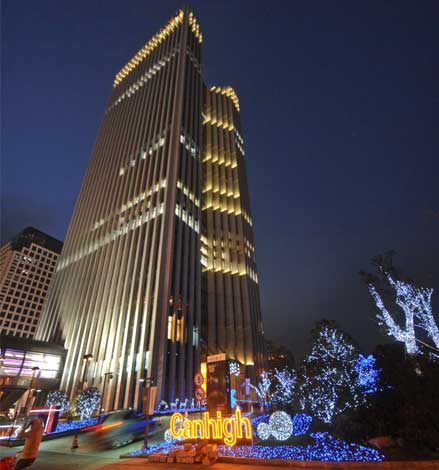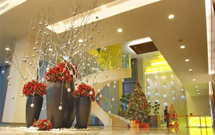 坤和中心现楼纯租赁,圣诞树与坤和中心大楼交相辉映。