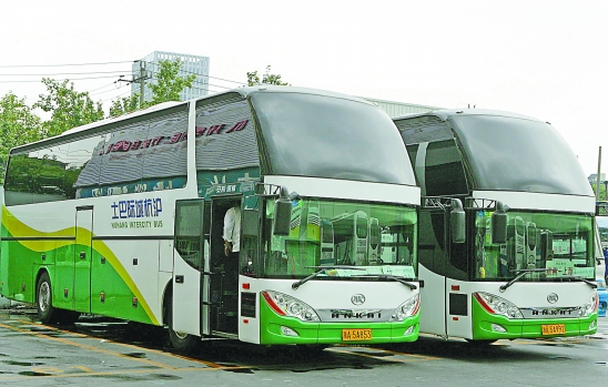 昨天,5辆崭新的印有“沪杭城际巴士”的大巴车开进了杭州汽车南站。白绿相间的车体颜色清爽自然,吸引了不少旅客的目光,“呦,新车!”“挺豪华的,是旅游包车吧?”