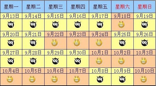 昨天一早上网,好几个朋友都发了同一张图片给我——今年中秋国庆休假表。