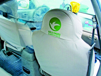上了车:一看座套颜色,是米色的哦,而一般出租车座套都为白色。二看靠背后面,那里也有企业LOGO。三看车内张贴,副驾驶座正前方、后排座位左右车门内侧都贴着五项承诺服务。