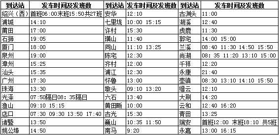 杭州长运站场四大汽车站最新班车时刻表(2)